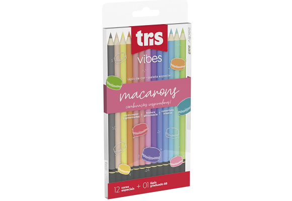LAPIS DE COR TRIS VIBES PASTEL MACARONS 12 CORES+1 LAPIS 6B
